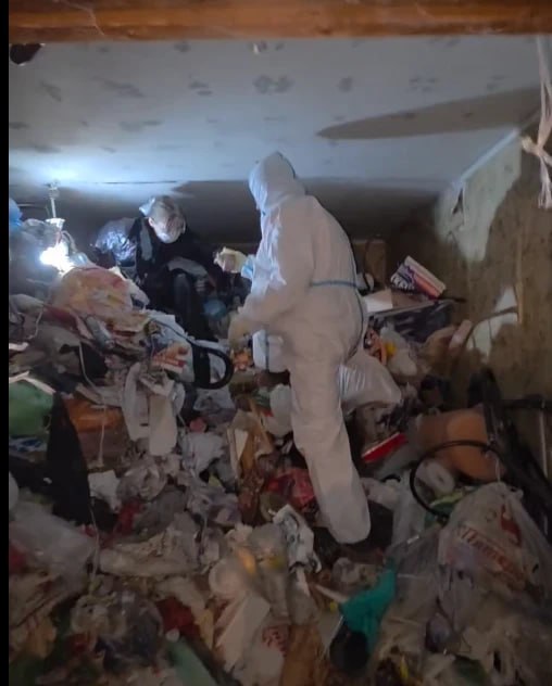 За три дня специалисты пробрались сквозь мусорные горы к одной из комнат, где находилась женщина. Ей помогли выбраться и передали медикам.