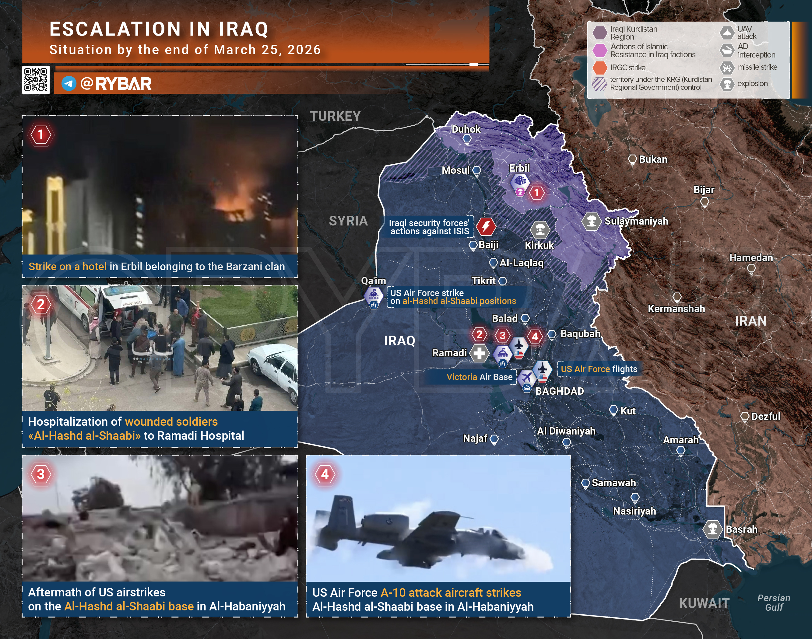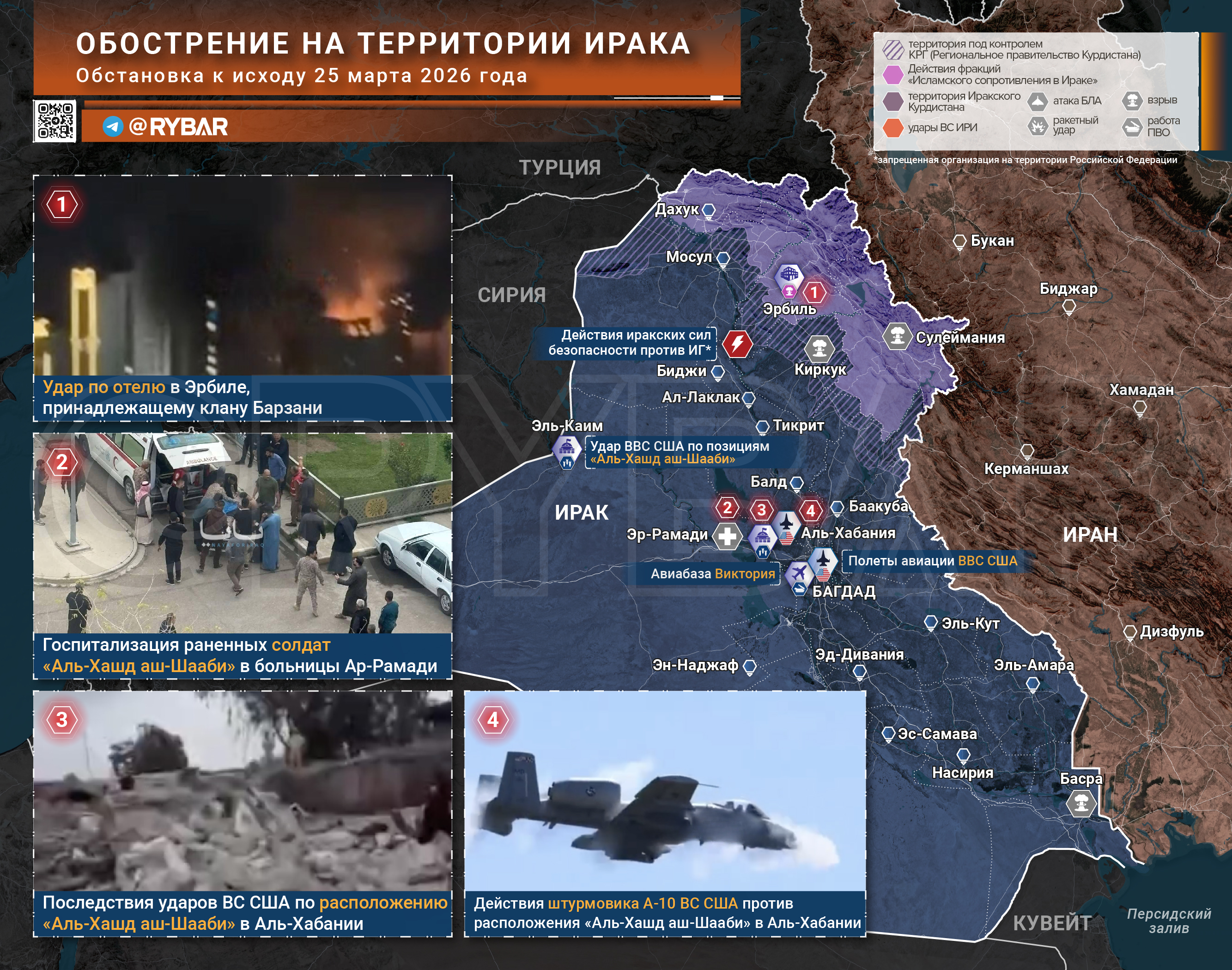 В Ираке ВС США наращивают удары по «Аль-Хашд аш-Шааби», что вызывает протест даже у властей в Багдаде, прежде пытавшихся держать нейтралитет. В ответ проиранские формирования поразили дронами РЛС и вертолет ВС США под Багдадом.
