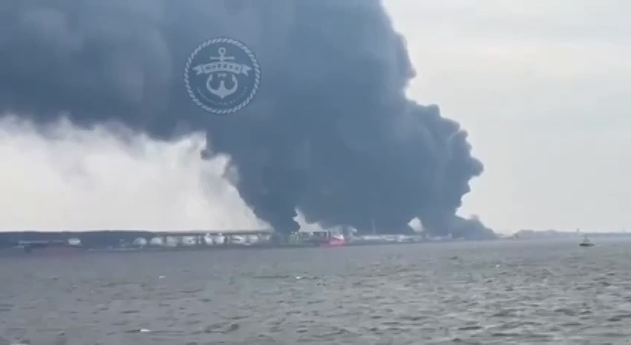 У Усть-Луге продолжают выгорать поврежденные бочки с топливом пострадавшие во время вчерашнего налета дронов.
