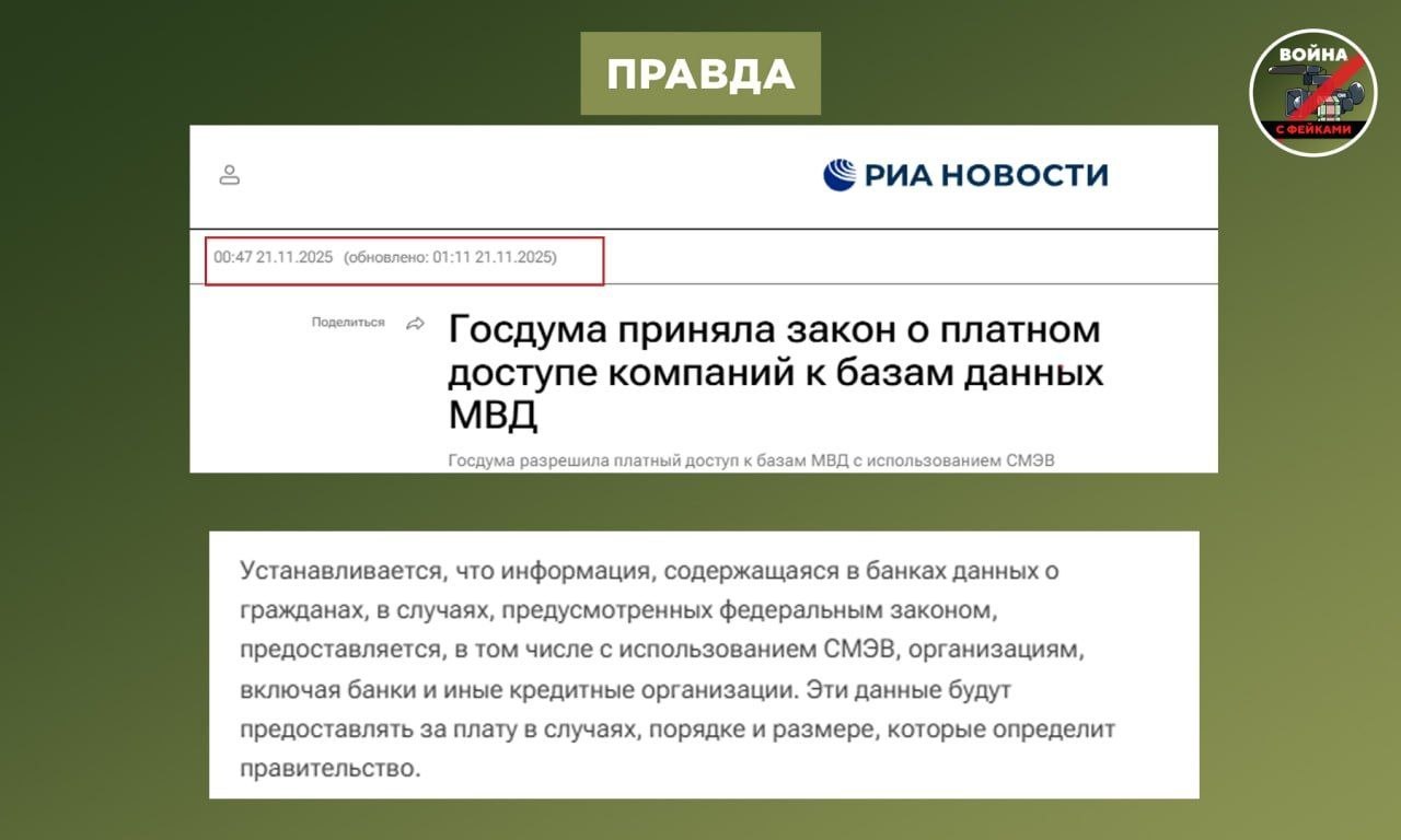 Фейк: Полиция теперь будет официально торговать любыми данными россиян. Об этом пишут телеграм-каналы со ссылкой на The Moscow Times.