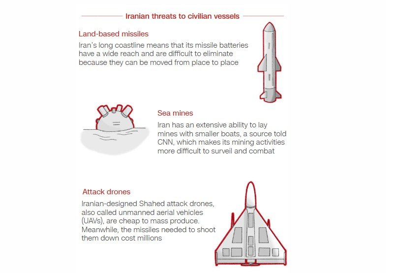 Морские мины. По словам источника CNN, Иран обладает широкими возможностями по установке мин с помощью небольших судов, что затрудняет наблюдение за его минно-заградительными работами и борьбу с ними.