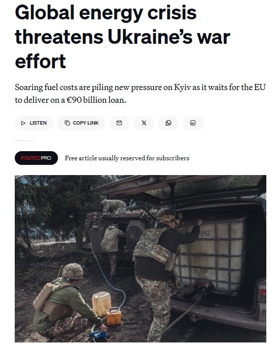 ‘Двое солдат на территории Украины рассказали POLITICO, что последние скачки цен негативно сказываются на их запасах топлива для боевых машин, таких как танки, артиллерия и бронетранспортеры.