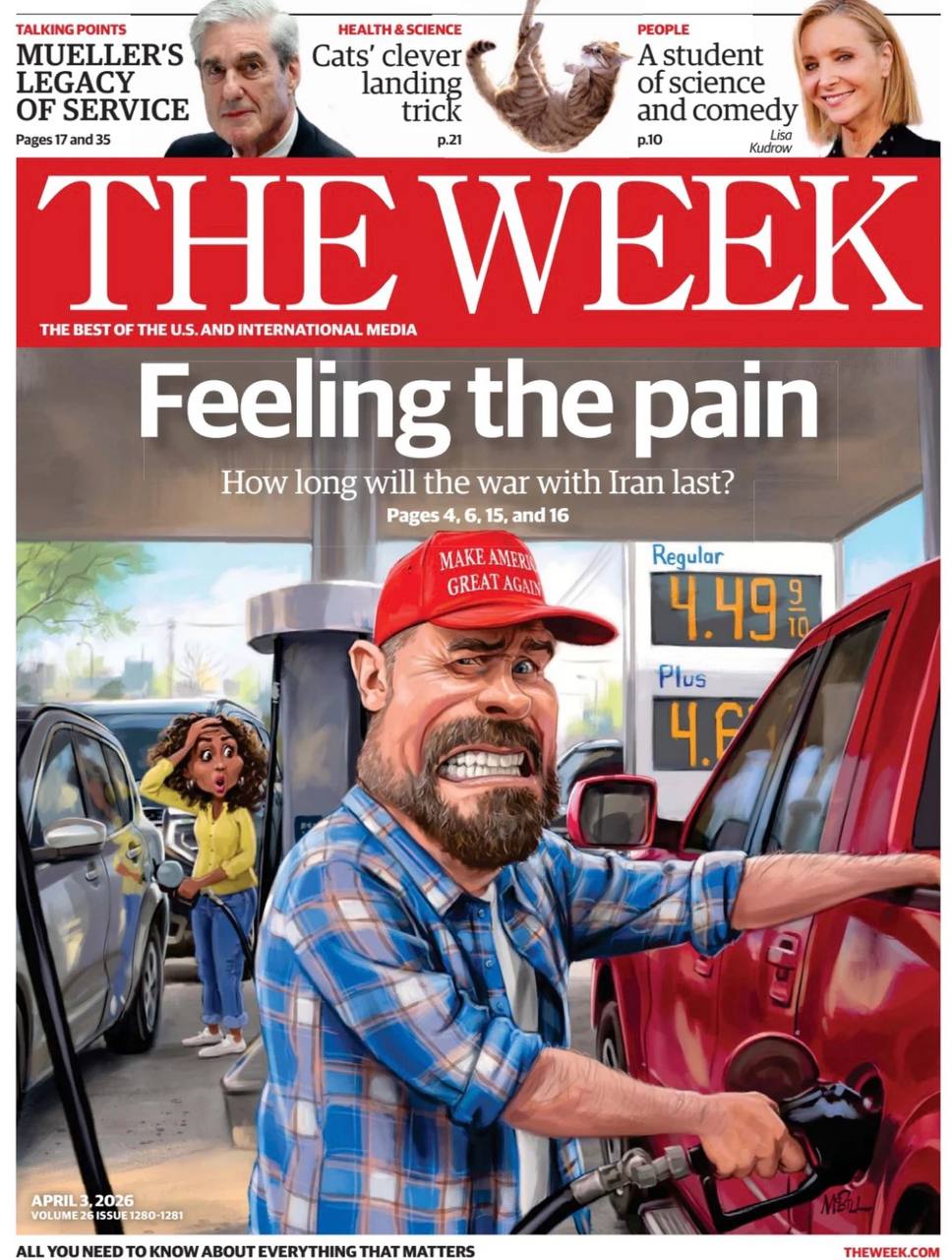 «Ощущая боль. Как долго продлится война с Ираном?» Американский еженедельник The Week сосредоточился на проблемах простых американцев в связи с резким повышением цен на заправках.