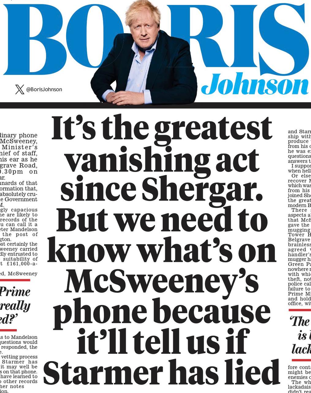 Вот Бориска на целую полосу и пытается активно намекать на то, что Стармер лгал, а «кража» телефона - это выдумка с целью выгородить премьера. Сами понимаете, не до войны в Иране ему теперь. Как и не до войны на Украине, которую он обрек на жертвы…