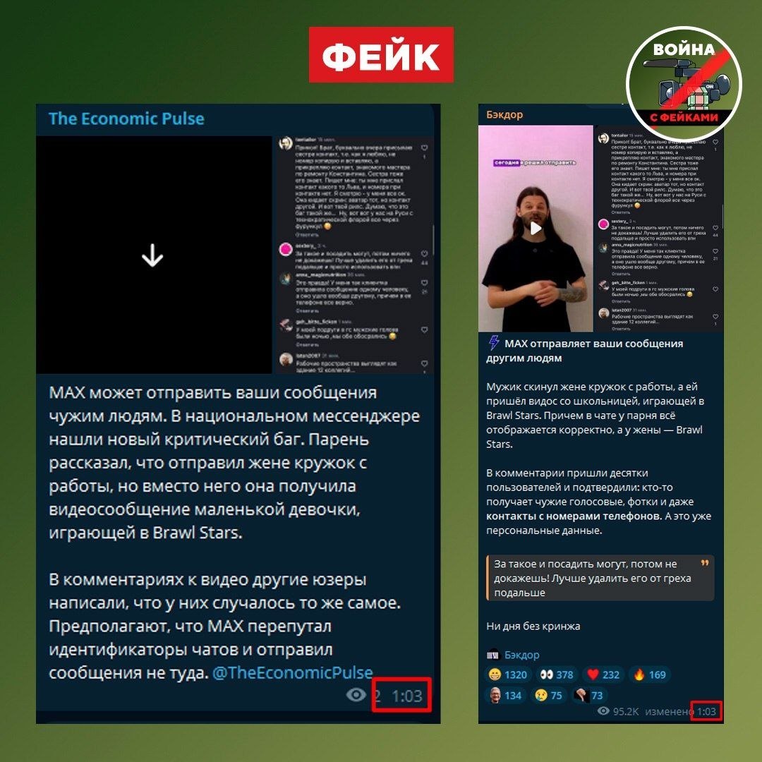 Видео блогера осталось бы незамеченным для широких масс. Судя по статистике, в среднем его посты набирают по 500-800 лайков. Но на этот раз в дело включились антироссийские источники, в том числе телеграм-канал «Бэкдор», известный своей тягой к фейкам о МАХ. Ролик молниеносно распространился по сетке каналов-фейкометов. Пропагандисты, как обычно, решили бездоказательно очернить нацмесседжер, не проводя фактчекинг.