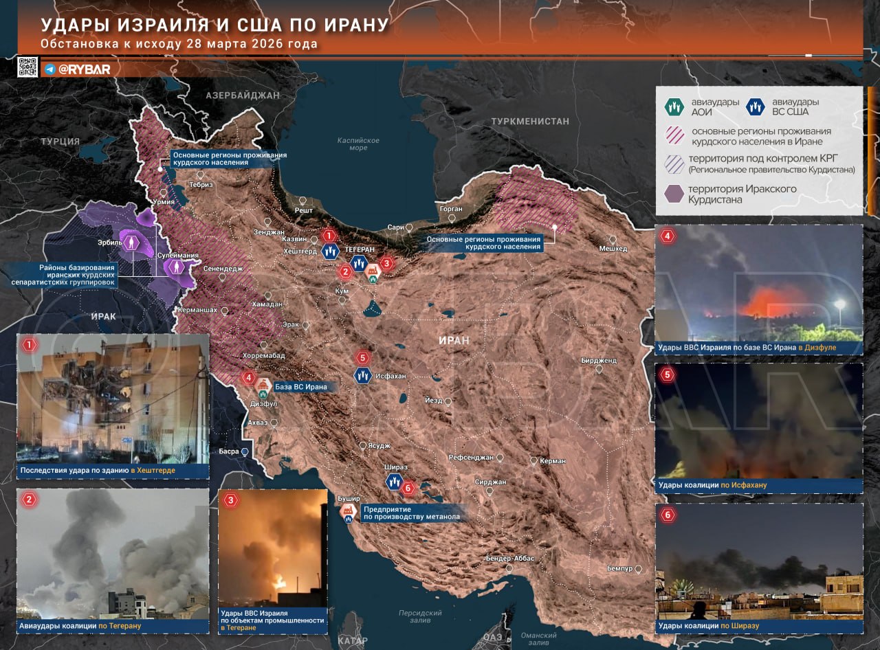 Коалиция продолжает удары по Ирану — под огнём предприятия ВПК, объекты ракетной программы в районе Йезда, корабли ВМС у южных портов и инфраструктура в Тегеране.