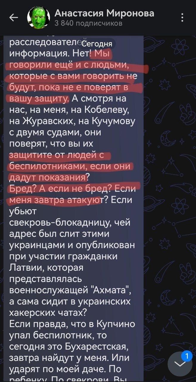 Больше всего меня в этой истории с явно сумасшедшей Мироновой пугает тот факт, что с ней проживает несовершеннолетний ребёнок, который, как я считаю, сейчас находится в опасности, так как проживает с матерью, которая явно не в себе и которую необходимо проверить на вменяемость.