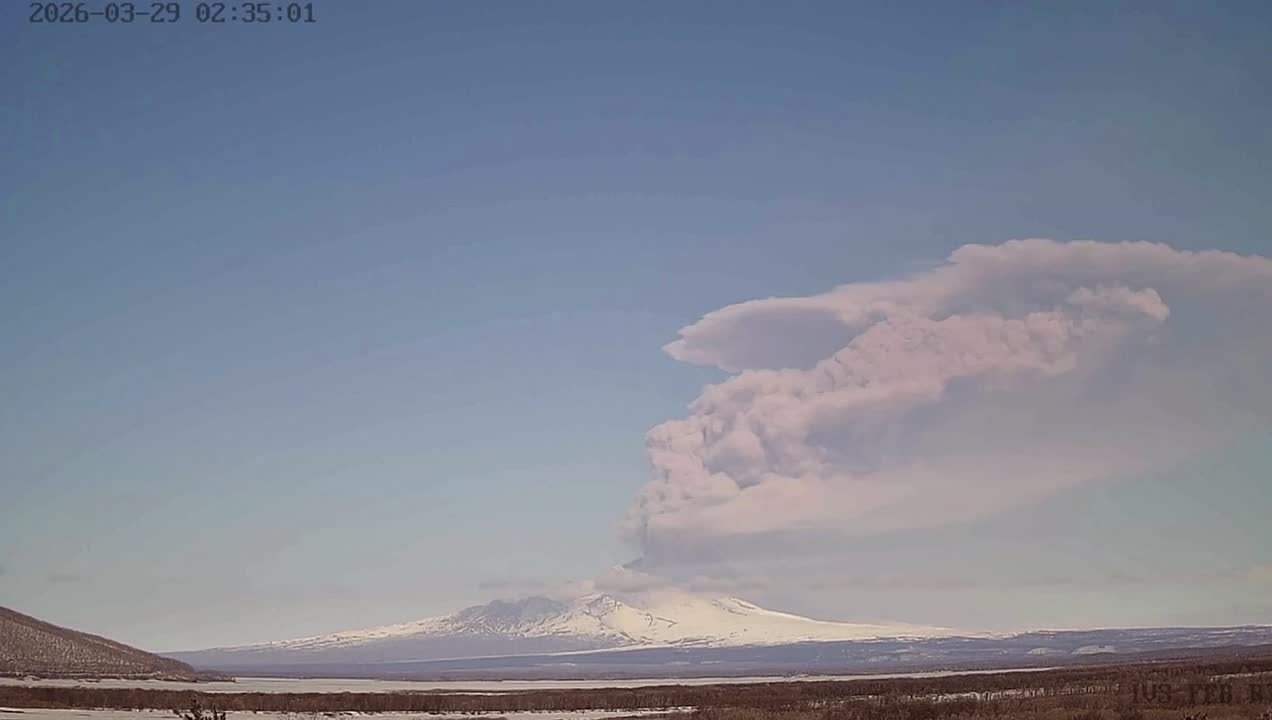 Вулкан Шивелуч на Камчатке заволновался. Красивое зрелище, хотя и страшноватое. Удивительна природа России!