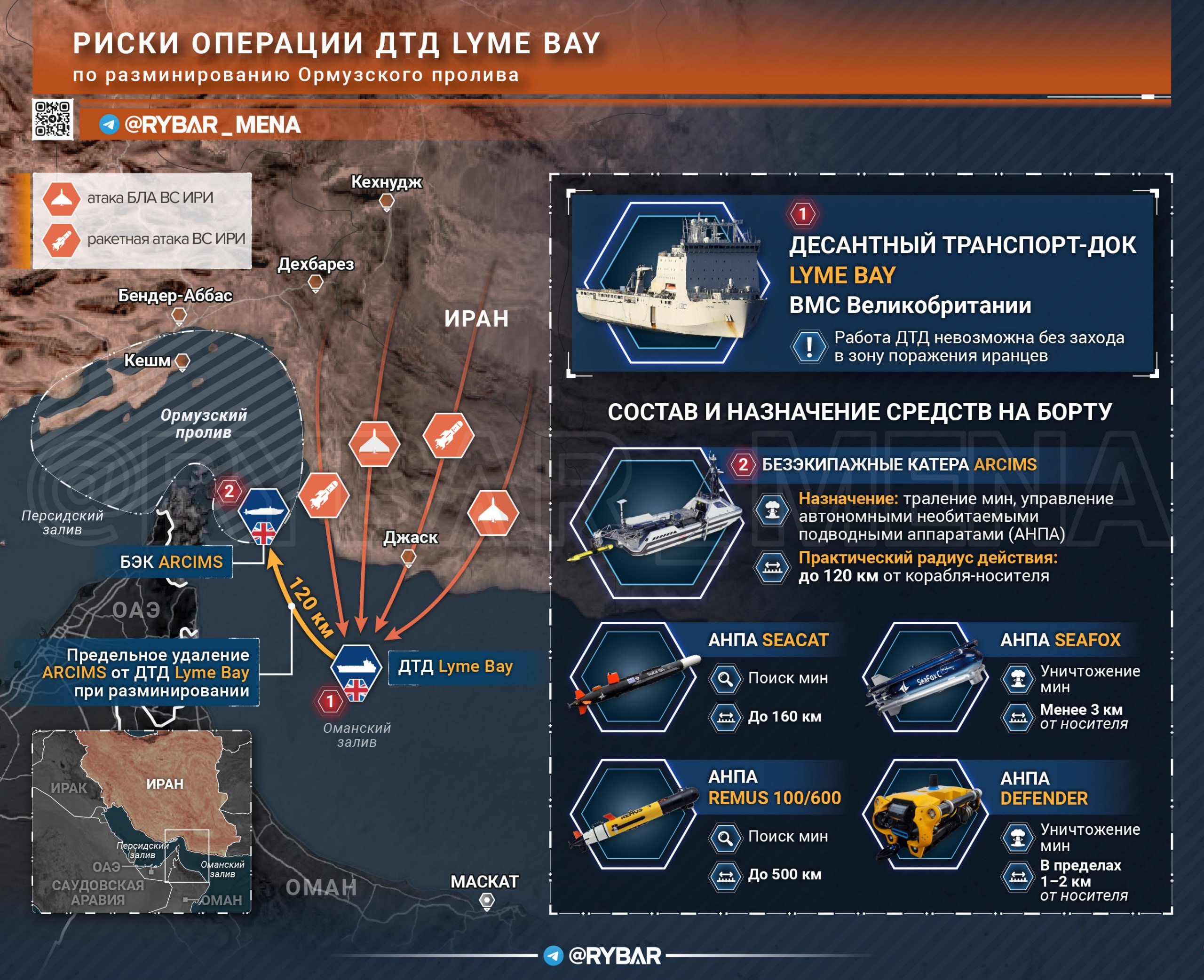 Редакция ОРИЕНТАРЬ @rybar_menaпоказывает, как устроена эта многослойная война — от Ормуза до Ливана, от танкеров до цифровых атак.