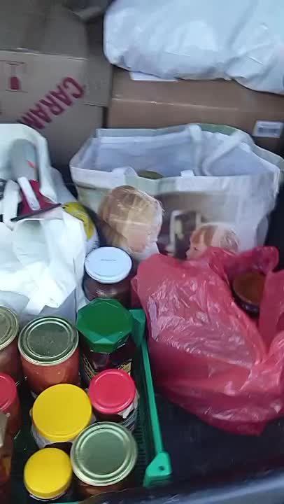Сегодня мама с соседками в машину натолкали закруток: салаты, варенья, компоты. Пришлось все перекладывать, опять в "волонтерский тетрис" играть.