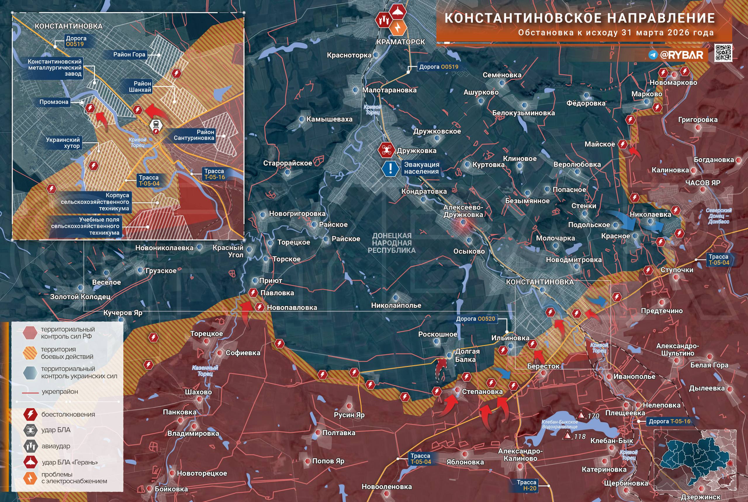 На Константиновском направлении штурмовики выбили противника с позиций в полях у сельскохозяйственного техникума и теперь ведут бои на территории самого заведения. Параллельно с этим бойцы ГВ «Юг» расширяют зону присутствия в промзоне в центре города.