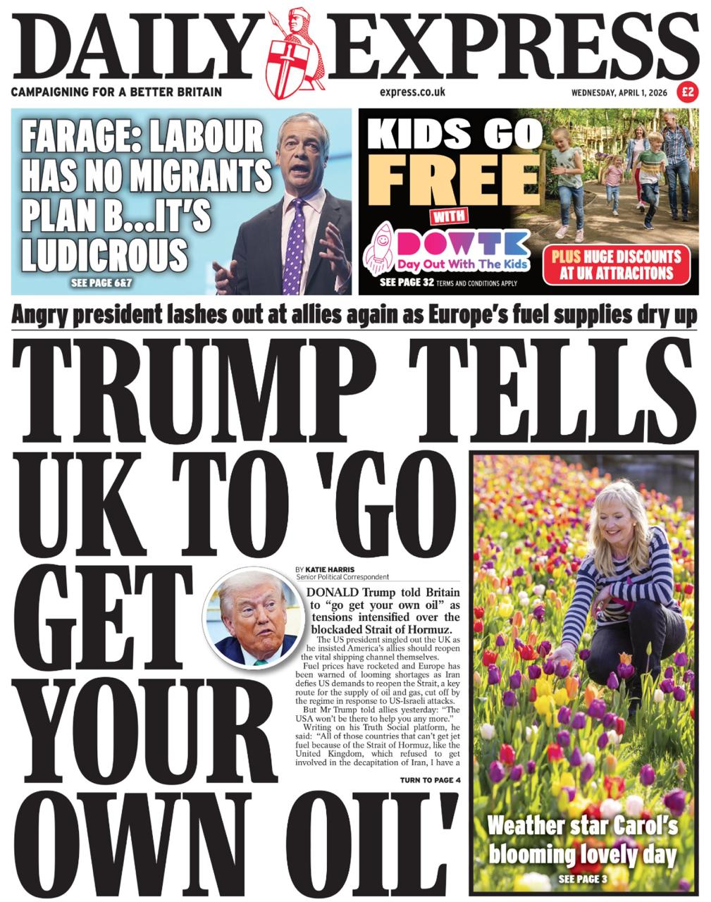 Британские газеты сегодня просто сходят с ума по поводу обращения Трампа к своим европейским союзничкам: «Идите и заберите свою нефть».