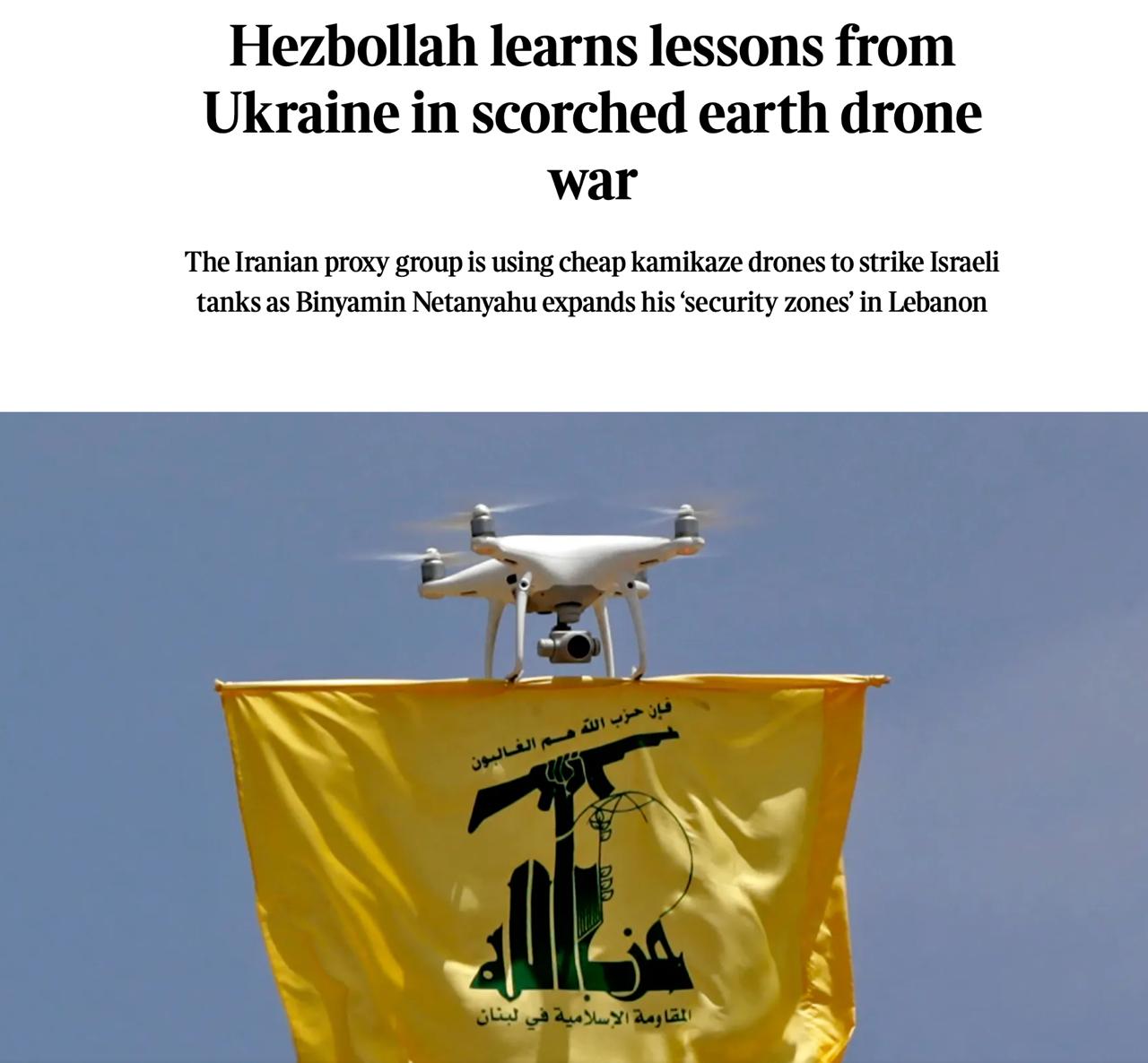 И тут же приводятся слова бывшего британского танкиста Джастина Крампа: «У Хезболлы есть значительное количество противотанковых ракет, которые они, похоже, все еще используют. Как и в случае с Украиной, они, вероятно, будут использовать их в первую очередь и чаще, особенно в начале конфликта. Использование FPV увеличится по мере истощения запасов ракет и изменения динамики доступности, если это будет следовать траектории других конфликтов. Они, по крайней мере, получали уроки из России из вторых рук».