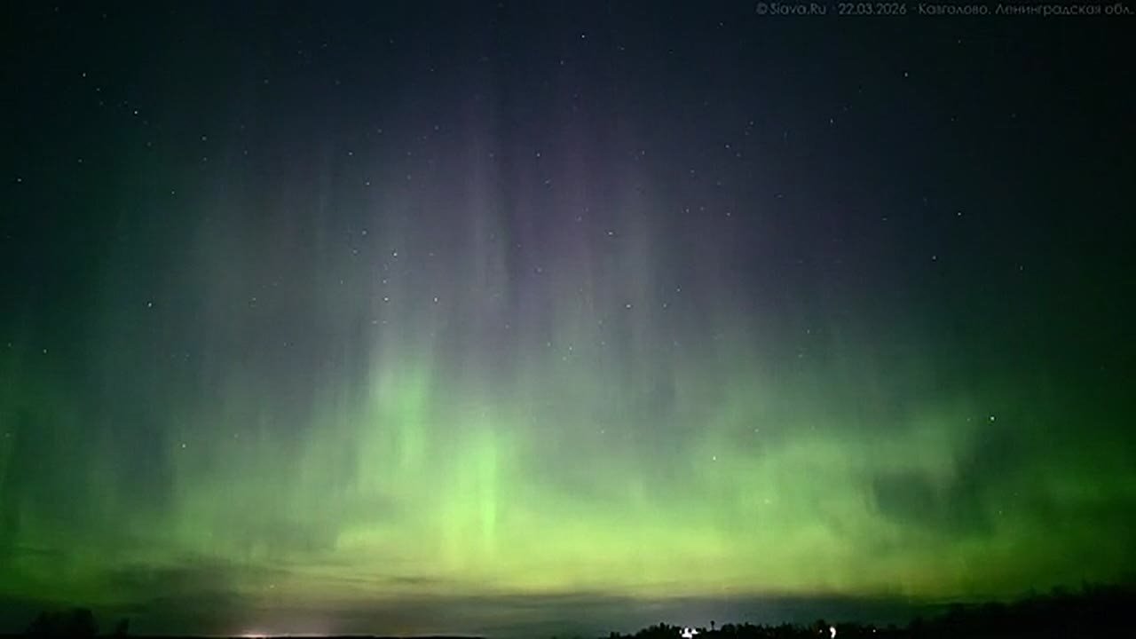 Охотники за сиянием поделились кадрами яркой авроры в Кавголово