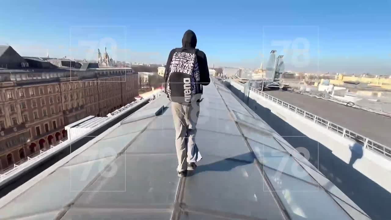 Подростки неспешно прогуливались по крыше и снимали все происходящее на камеру. Как сообщил очевидец , их покорение длилось около 10 минут.