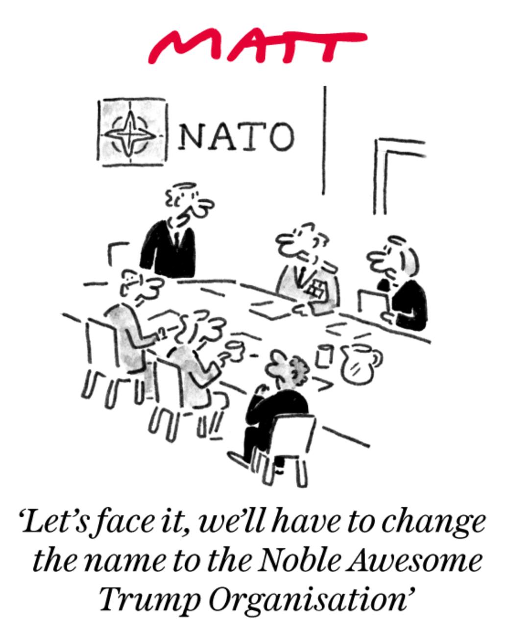 Пока все британские газеты обсуждают, как спасти НАТО, The Daily Telegraph предлагает эффективный способ! Надо просто переименовать эту организацию, сохранив при этом аббревиатуру, и назвать ее Noble Awesome Trump Organisation (Организация Благородного Потрясающего Трампа).
