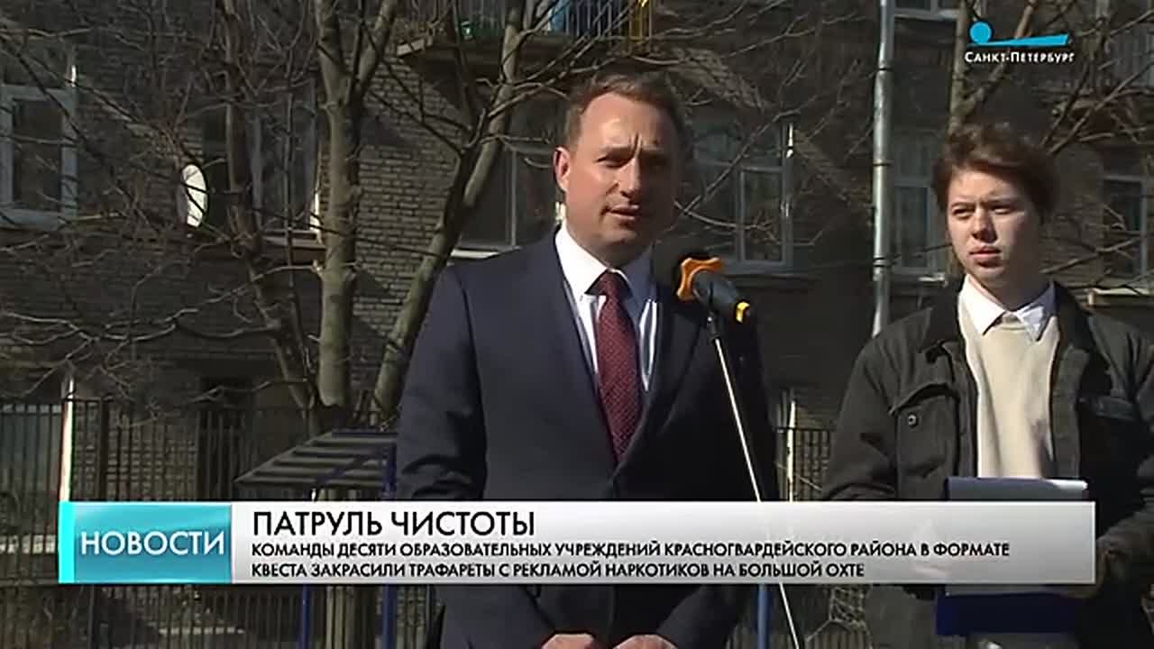 В Красногвардейском районе школьники вышли на борьбу с рекламой наркотиков — в формате квеста они закрашивали запрещённые объявления на фасадах зданий.