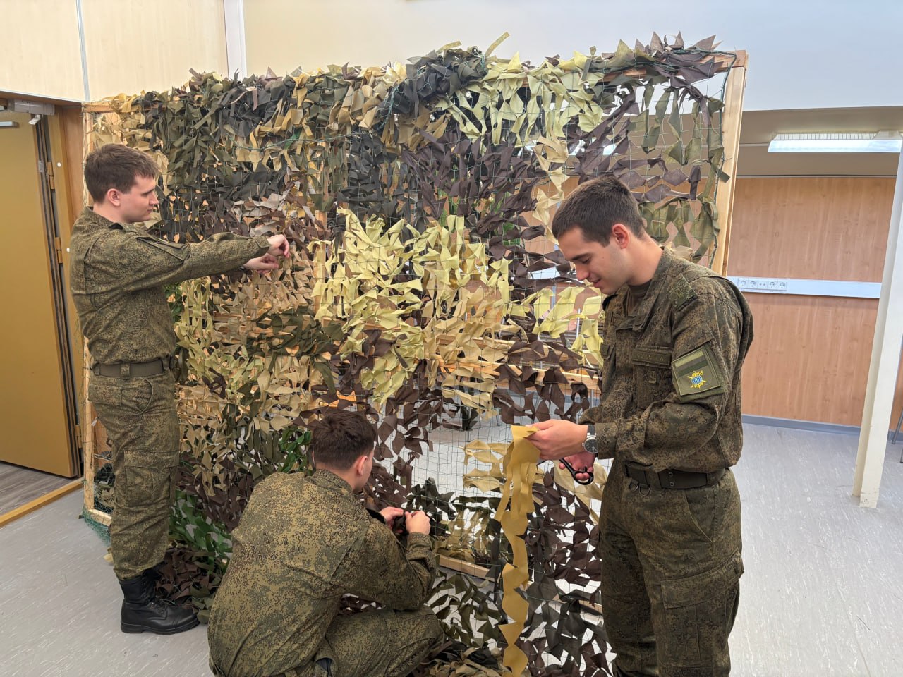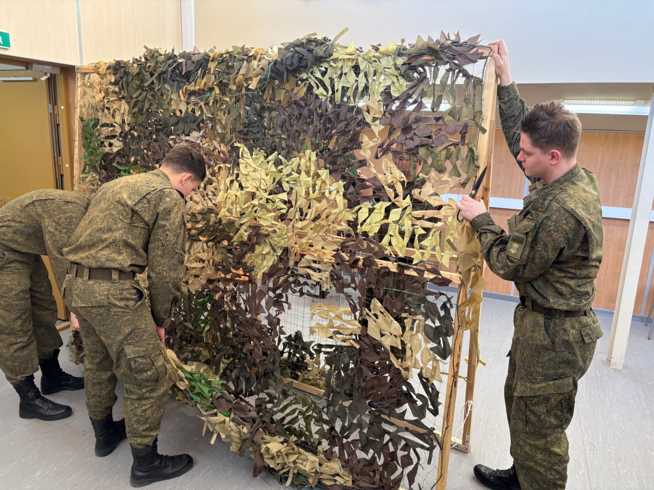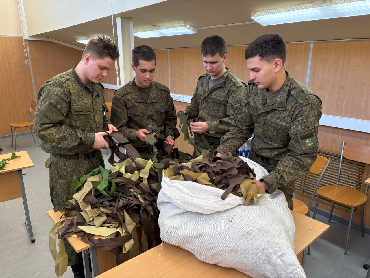 Студенты Университета ИТМО и активисты молодёжного центра «Пушкинец» объединились для плетения маскировочных сетей. На минувшей неделе они изготовили два комплекта в расцветке «Весна» для бойцов на передовой.