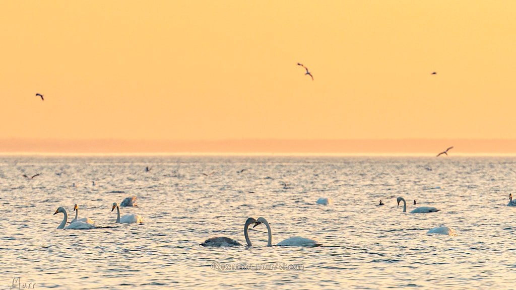 Стая прекрасных и благородных птиц остановилась недалеко от побережья Финского залива напротив намыва.