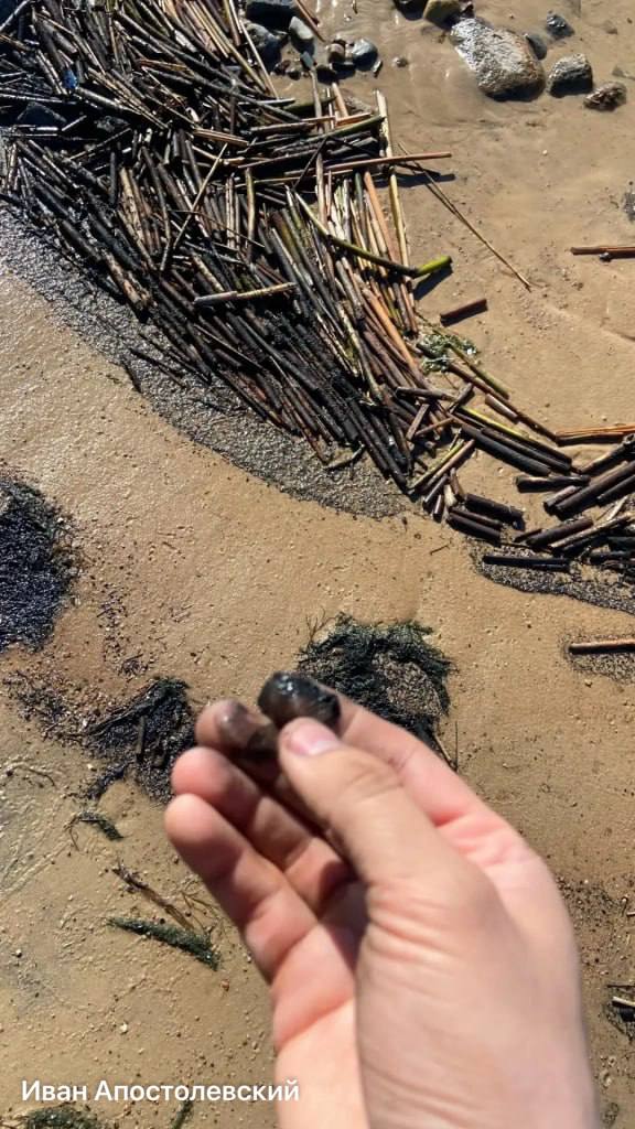Депутат ЗакСа Ленобласти проверил черную жижу на пляже, которую не нашел Эконадзор. По словам Ивана Апостолевского, кроме Липово Соснового Бора пятна заметны примерно в 300 метрах от пляжа в сторону деревни Ручьи.