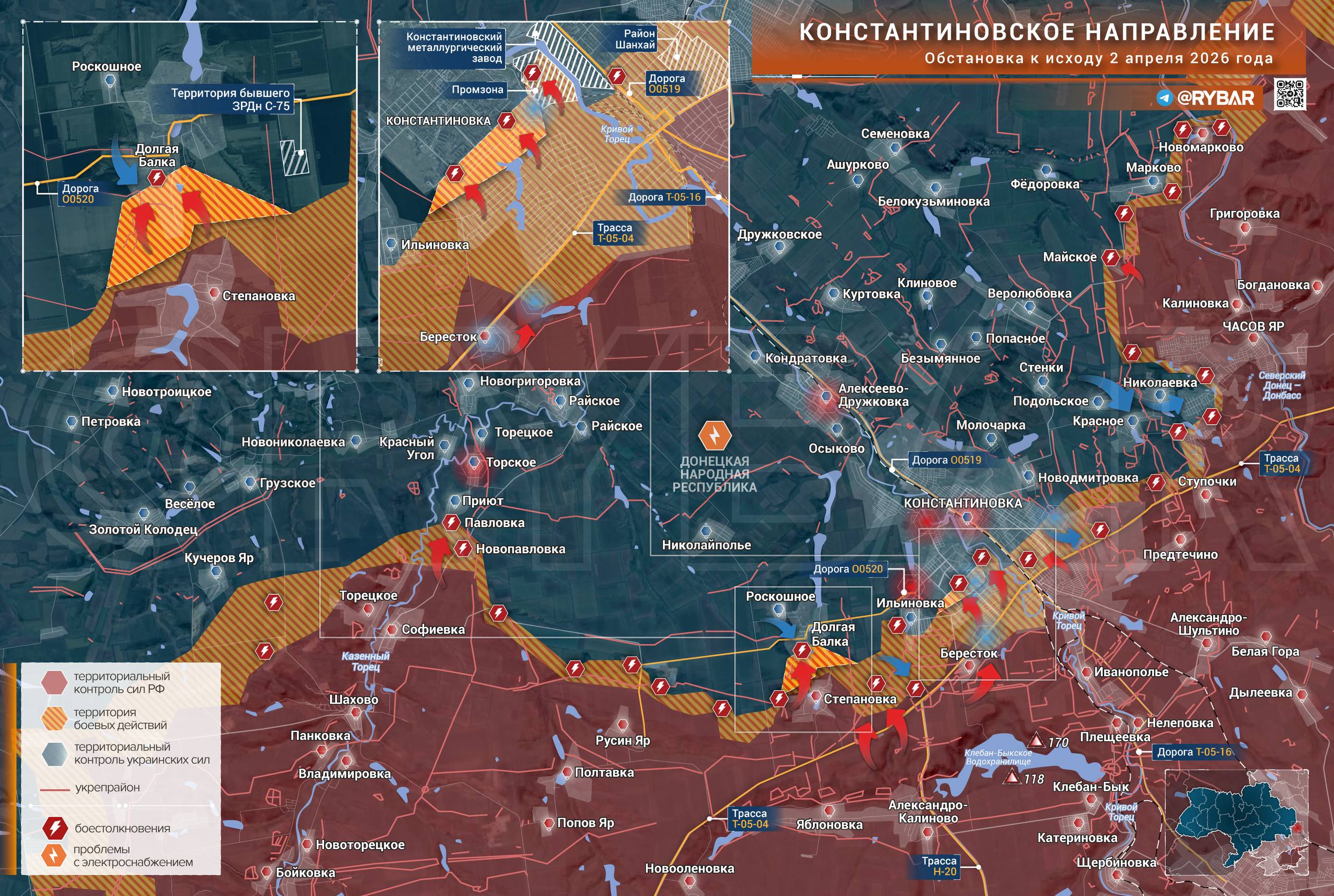 Онлайн-карты доступны по подписке на map.rybar.ru