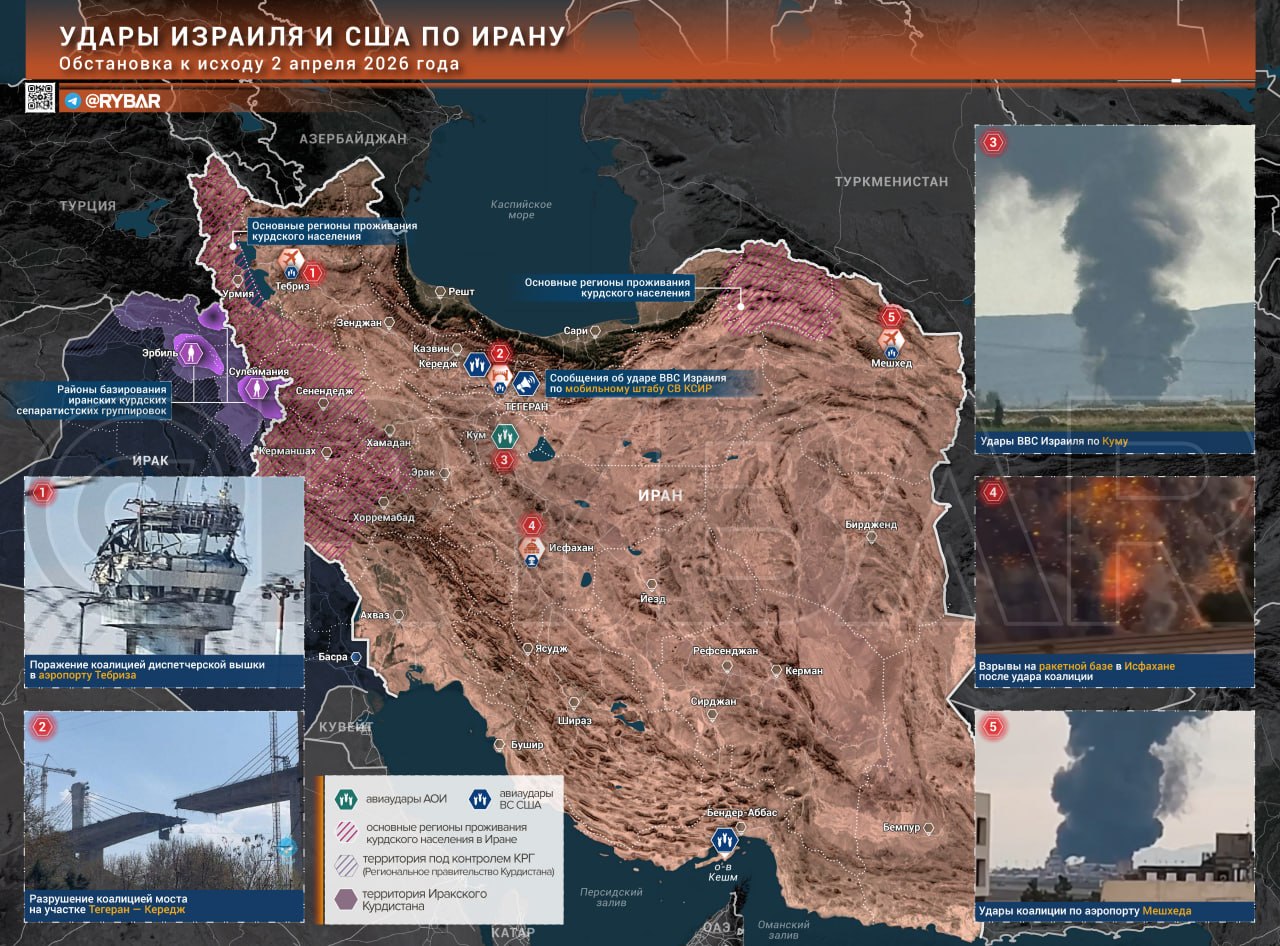 В Иране под ударами коалиции оказались Мешхед, Тебриз, Тегеран, Кередж и район Исфахана, где после попаданий по ракетному объекту более суток продолжались вторичные взрывы. Все большее внимание американцы уделяют и острову Кешм, что все сильнее укладывается в логику подготовки к возможной высадке и попытке деблокировать Ормуз.