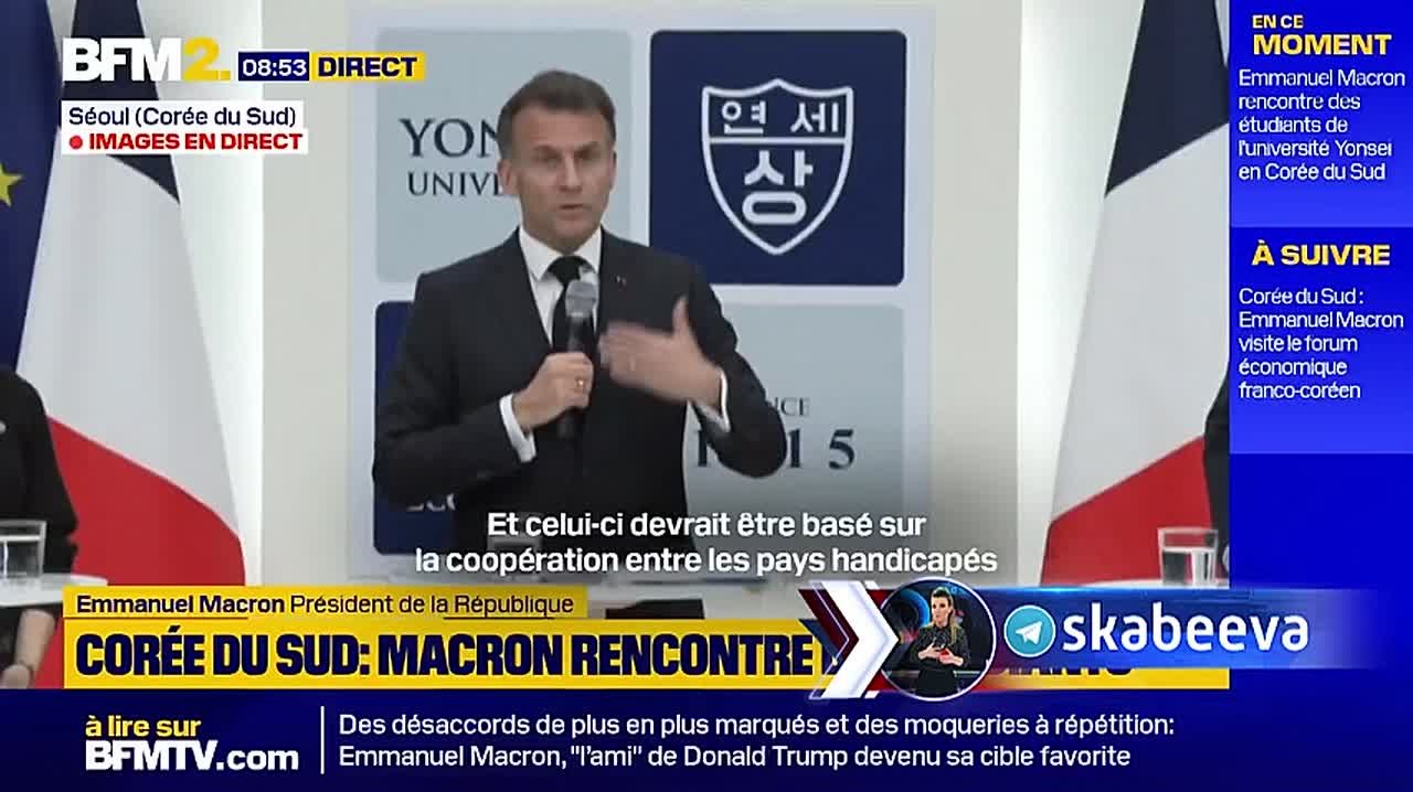 Макрон мечтает создать новый мировой порядок. Для этого он колесит от одного союзника США к другому. Позавчера Япония – сегодня Корея.