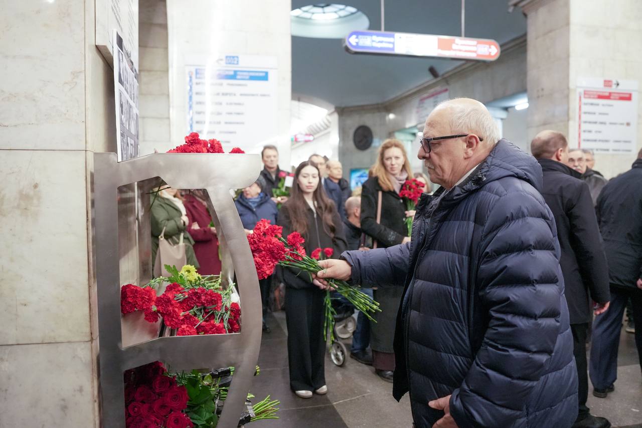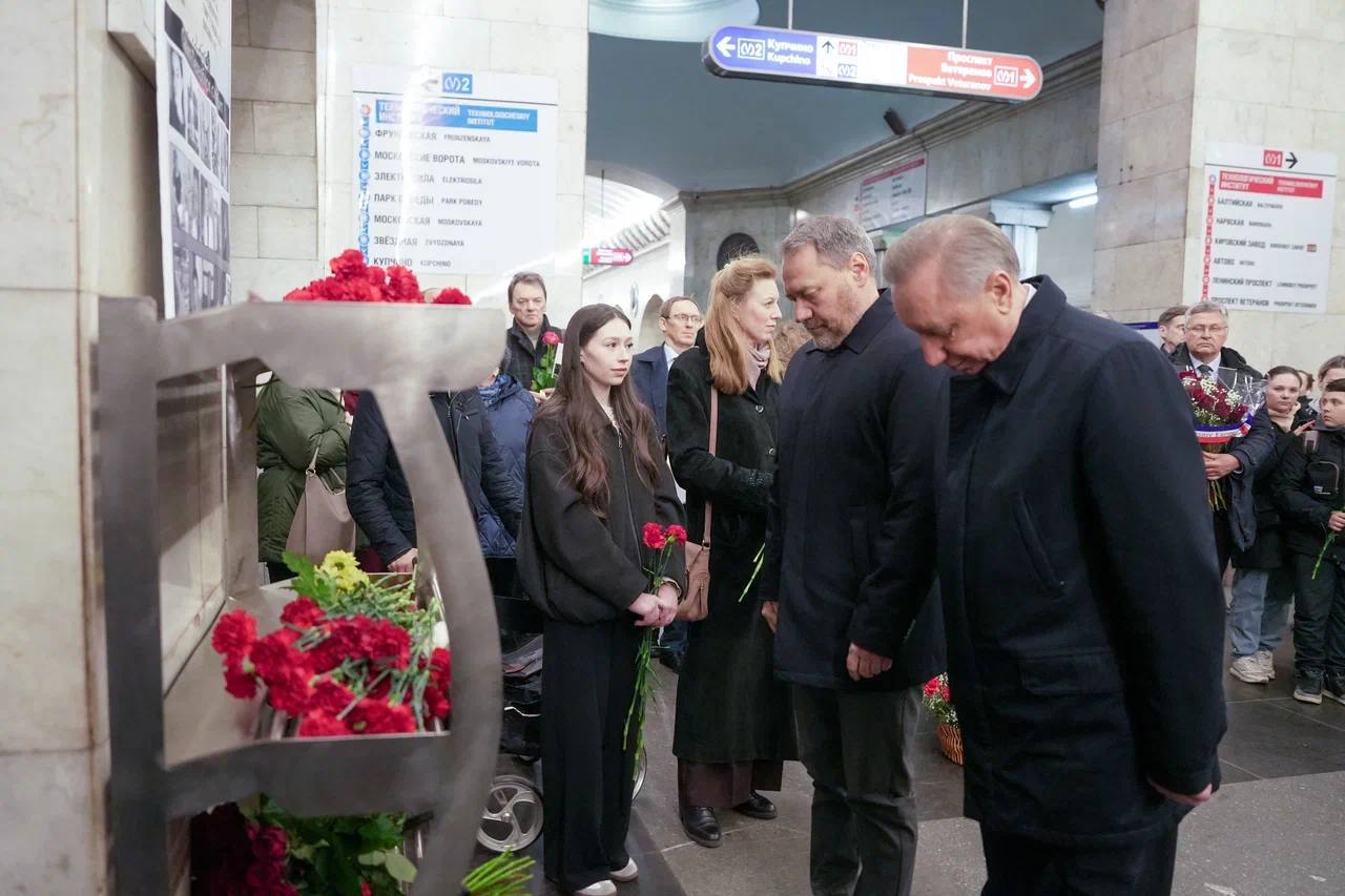 Губернатор города Александр Беглов и спикер парламента Александр Бельский приняли участие в акции памяти жертв теракта 2017 года на станции Технологический институт. Участники возложили цветы к мемориальной доске.