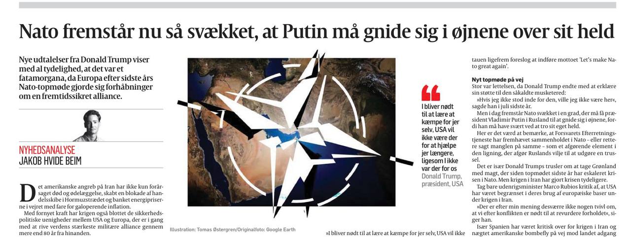 «НАТО находится в таком ослабленном состоянии, что Путину трудно поверить в свое везение». Это статья в датской газете Politiken.