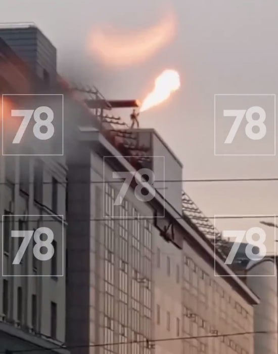 Столбы пламени высотой несколько метров выпускал мужчина с огнемётом на крыше БЦ около крейсера «Аврора»