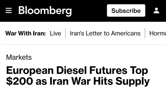 9,7% — рост фьючерсов на дизельное топливо в Лондоне, превысивших 200 долларов за баррель. Это максимум с 2022 года, — констатирует Bloomberg