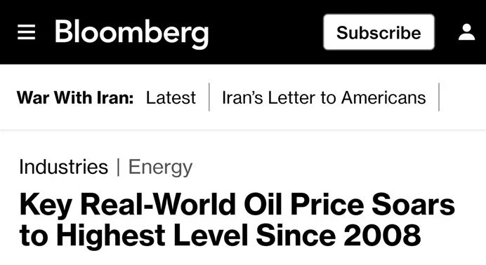 В это же время уходит за облака и сырьё - 141,37 доллара за баррель — ключевая реальная цена нефти. Самый важный показатель на нефтяном рынке превысил значения кризиса 2022 года, — констатирует Bloomberg