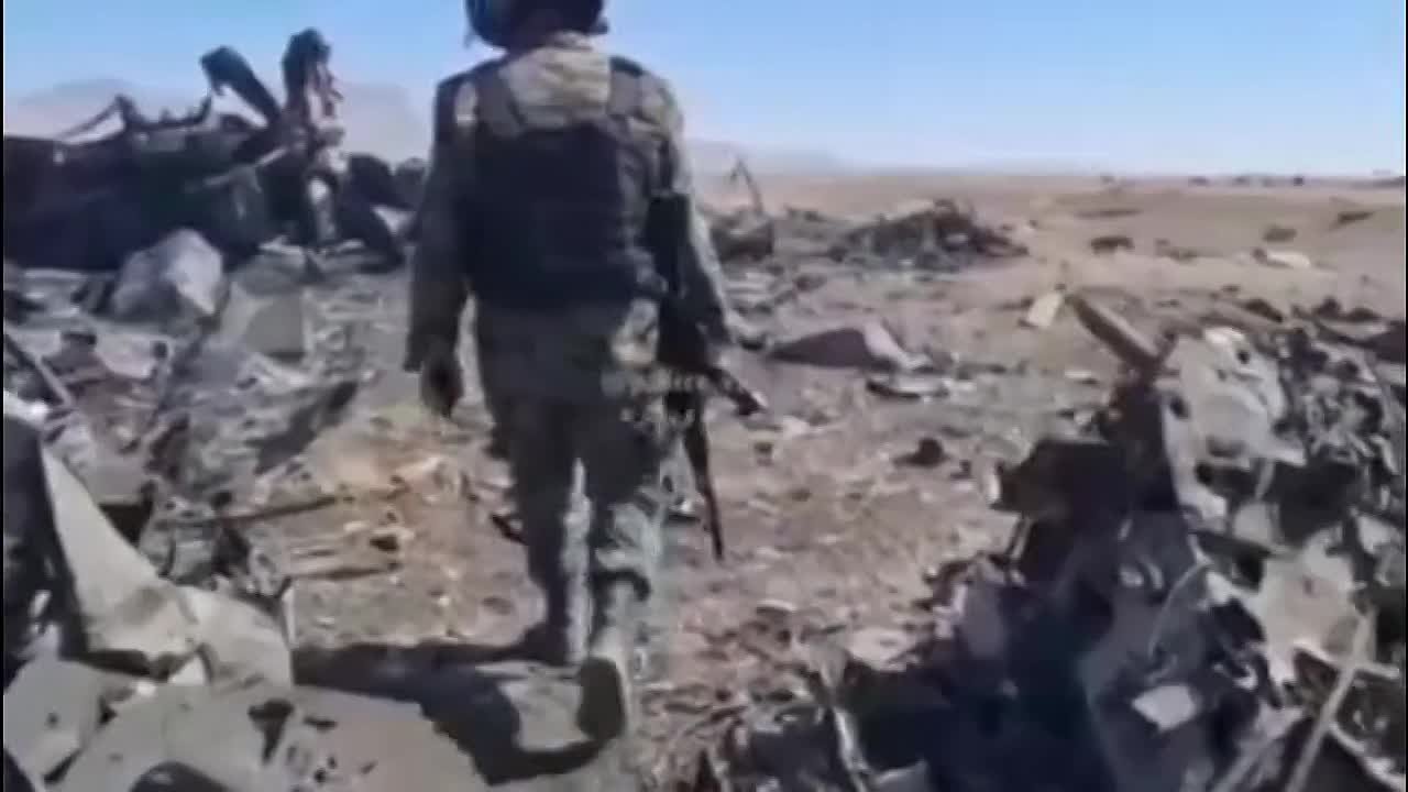 Иранские военные и журналисты на месте уничтожения 2 С-130 и 2 MH-6 Little Bird в Исфахане.