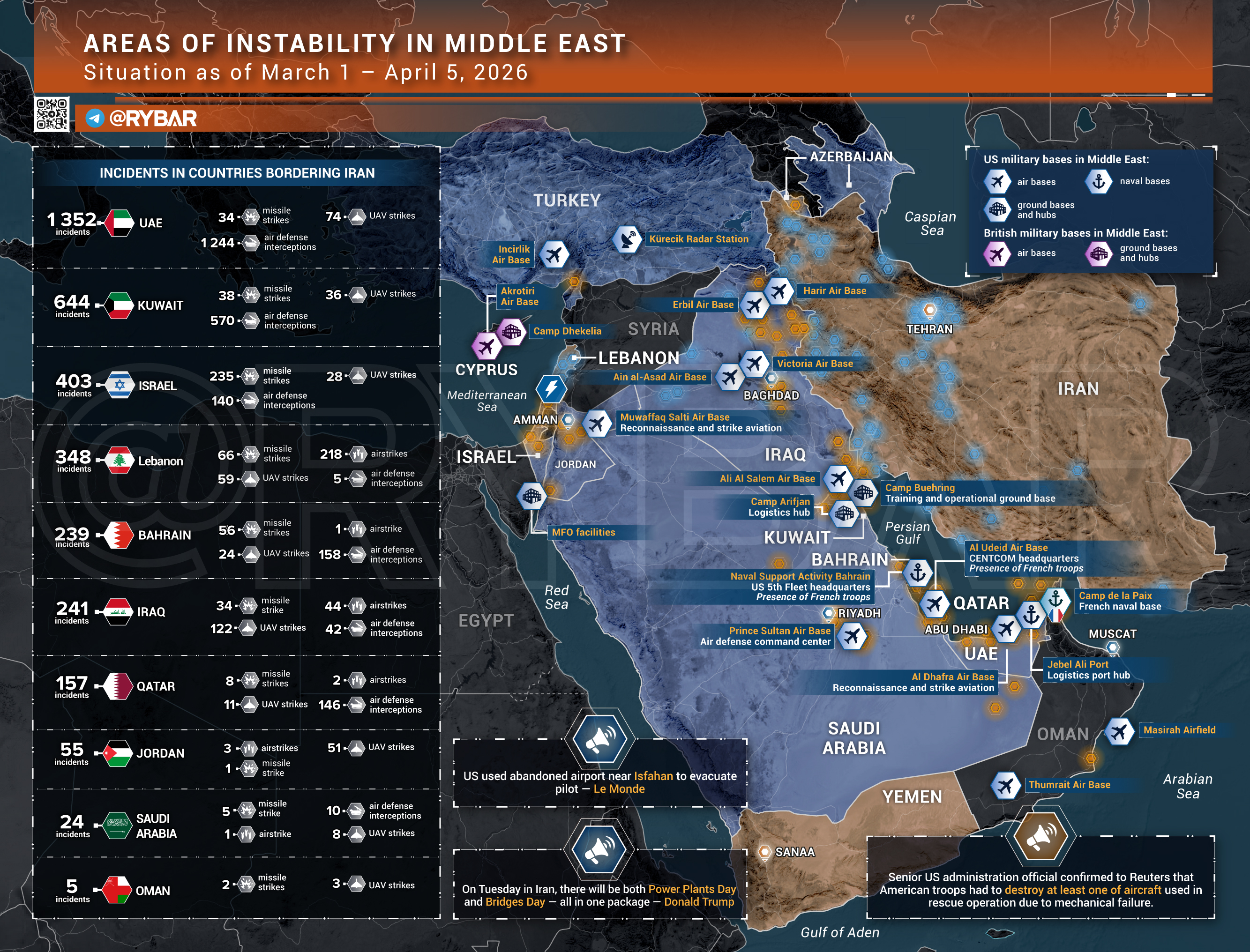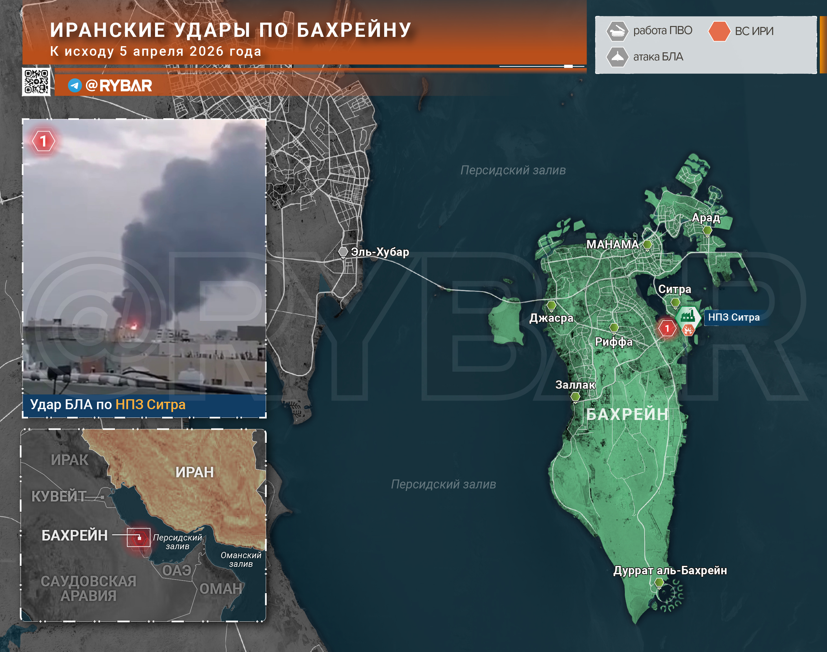 В Кувейте повреждены объекты нефтяной инфраструктуры, подстанции и опреснительные установки. В Бахрейне вновь атакован НПЗ Ситра — ключевой для страны объект. Причём дополнительно по нему ударила и ракета комплекса Patriot, что стало очередным эпизодом «дружественного огня».
