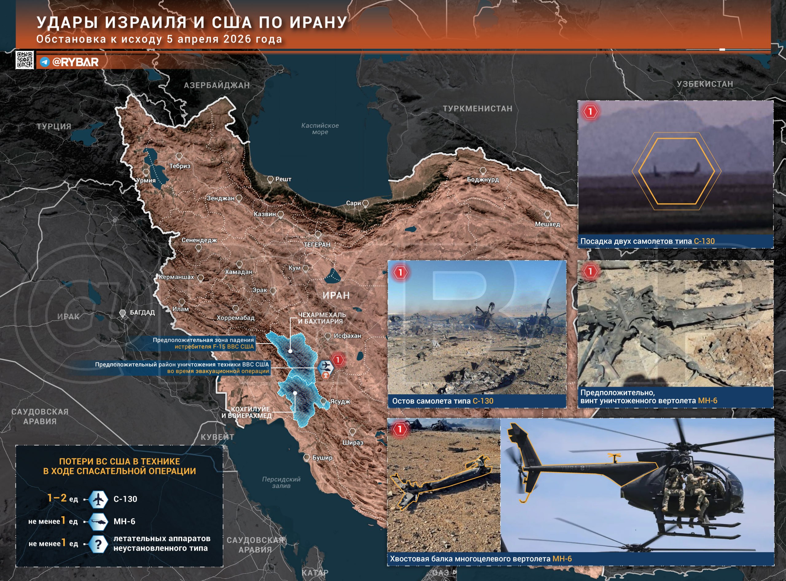 При этом «цена спасения» оказалась высокой: США признали потерю двух транспортных C-130, задействованных в операции. В сумме за последние дни речь идёт уже о потере сразу нескольких бортов, включая F-15E, A-10 и вертолёты.