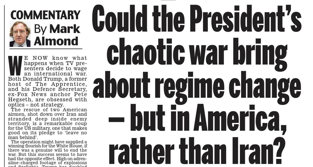 Просто хочу в этой связи напомнить, что Daily Mail до одури поддерживала Трампа и горячо приветствовала войну в Иране в первые ее дни, призывая Британию присоединиться к ней.