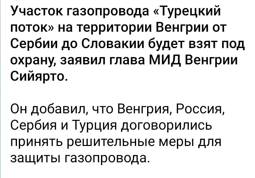 И получается, что в Сирии, где у курдов Джулани отнял нефтепромыслы, ему нужно продовольствие, особенно перед перспективой роста цен на него, и он общается с Зелей, в компании турецкого министра. То есть фактически, идут переговоры о том, чтоб украинские дроны поставлять в Сирию, вместе с зерном (возможно как маскировку), чтоб турки, как настоящие собственники Джулани, это дроны под видом своих, могли перекидывать в Иран, для применения против США и Израиля. И поэтому ВСУ нанесли очень неожиданный удар по зерновозу (чего ранее не было), явно используя этот фактор для переговоров, ведь это зерно шло через кавказский порт, скорее всего в Сирию. И там же Зеля договорился с турками о том, что не подвергая риску турецкую энергетику ударами по морской части Турецкого потока, получить свободу рук в интересах британцев, на участке газопровода, за пределами Турции. Чтоб британцы (разумеется не сами, а руками любых исполнителей), могли вмешиваться во внутриполитические процессы в Венгрии, за неделю до выборов, в надежде сместить так мешающего им Орбана. Который к тому же друг Трампа.