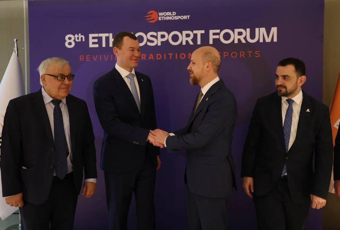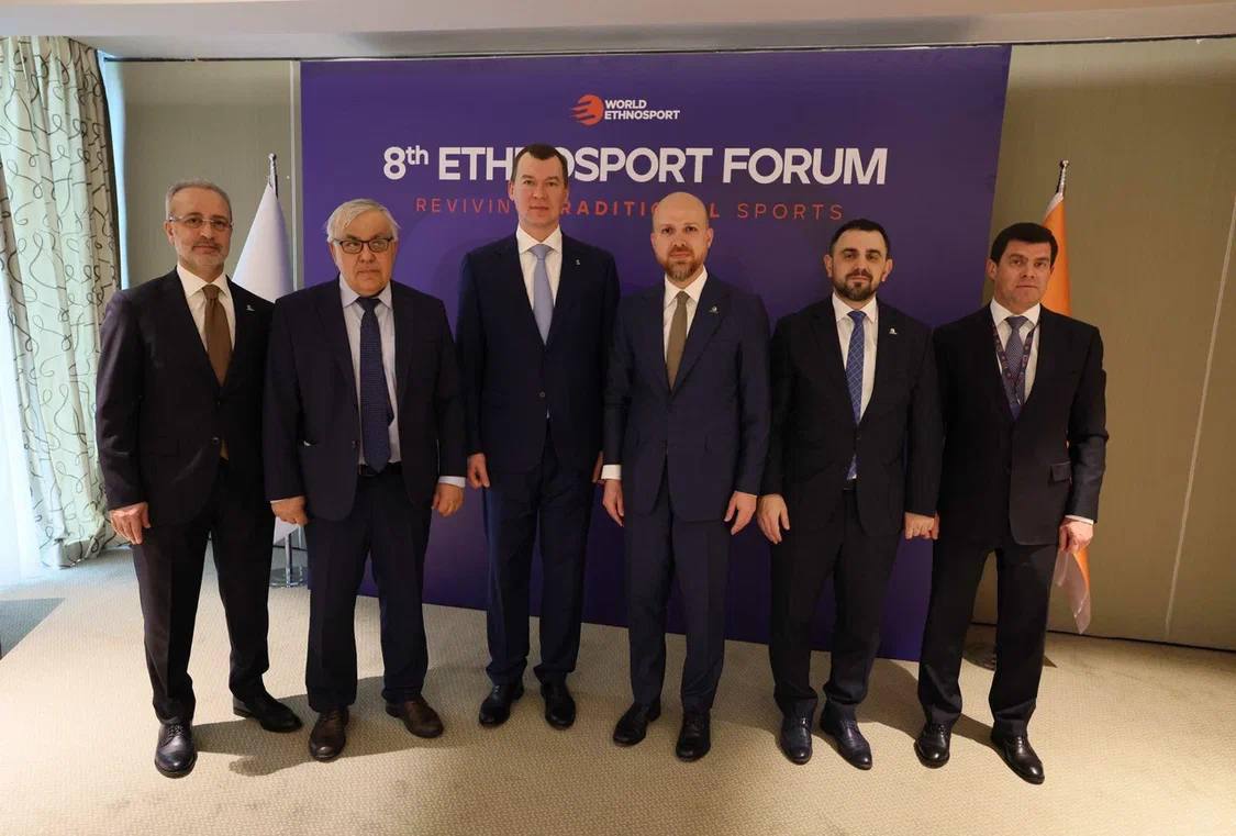 СМИ сообщили об очередной встрече министра спорта Михаила Дегтярева с сыном турецкого президента, главой Всемирной конфедерации этноспорта Билалом Эрдоганом на организованном им «Этнофоруме» в Анталье. Это уже 5-й их публичный контакт за пару лет. На конференции для Дегтярева были подготовлены более 10 международных встреч с главами спортведомств и олимпийских комитетов. Официальная повестка – восстановление в правах российских атлетов. При этом сам Эрдоган по итогам дал высокие оценки вкладу России в развитие национальных видов спорта и поблагодарил лично президента Владимира Путина.