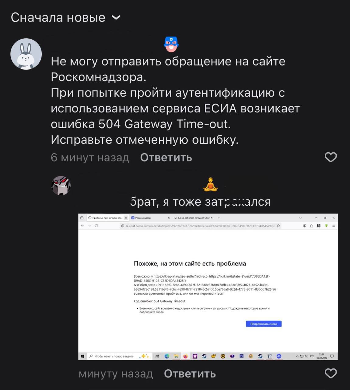 Сайт РКН умер — на нём невозможноподать обращения, ничего не грузит.