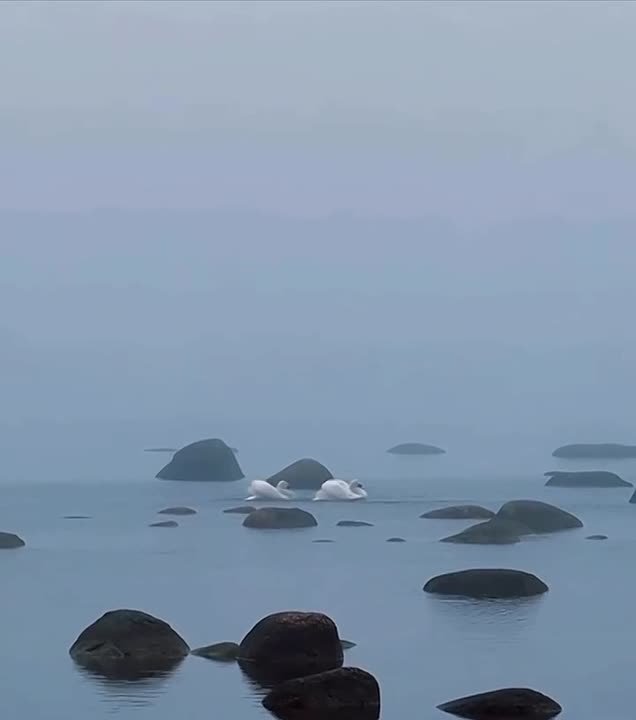 На Финском заливе запечатлели настоящую любовь. Пара лебедей исполнила изящный брачный танец.