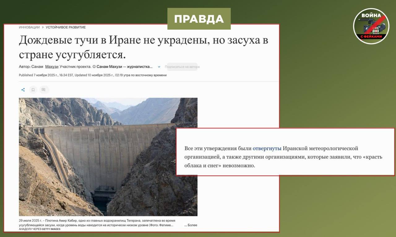 Правда: Первоисточником волны фейков по этой теме стал ресурс экс-депутата Госдумы и иноагента Олега Шеина. Он вбросил теорию о том, что США применяют на Ближнем Востоке технологии, способствующие расчистке неба от облаков, чтобы вести авиаудары по Ирану. В посте автор фейка не стал приводить какие-либо внятные аргументы и сослался, как водится, на некие источники. Затем фейк подхватили проукраинские каналы, помогая в раскрутке темы. Технология сработала: вброс попал в некоторые российские СМИ и региональные дагестанские чаты, участники которых начали обсуждать публикацию иноагента Шеина.