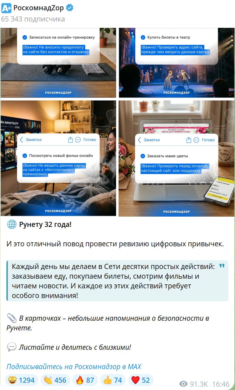 Официальный телеграм-канал Роскомнадзора поздравил пользователей с днём Рунета!