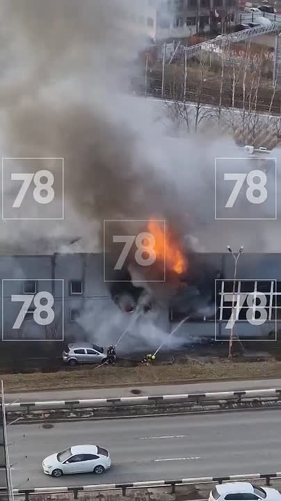 Спасатели ликвидировали пожар в здании автосервиса на Кушелевской дороге