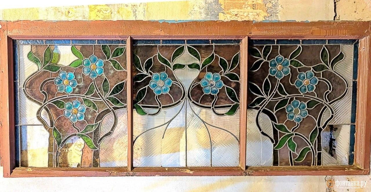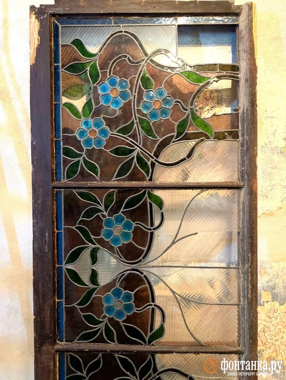 «Этот витраж в стиле модерн происходит из петербургской парадной лестницы. В данном случае сохранилась только верхняя часть — глухая верхняя фрамуга трёхстворчатого окна. Эксперт Татьяна Княжицкая, кандидат искусствоведения, куратор проекта по инвентаризации витражей Петербурга, подтвердила, что это витраж начала XX века», — рассказывает Ника Полухина.