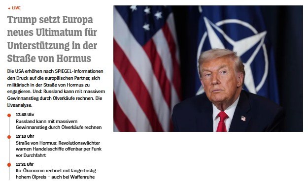 ‘США усиливают давление на европейских партнёров, требуя их военного участия в районе Ормузского пролива. Генсек НАТО Рютте проинформировал европейские столицы о том, что Трамп в ближайшие дни ожидает конкретных обязательств — отправки военных кораблей или других военных возможностей от Европы. Политических заявлений, подобных тем, что звучали с начала конфликта, уже недостаточно.