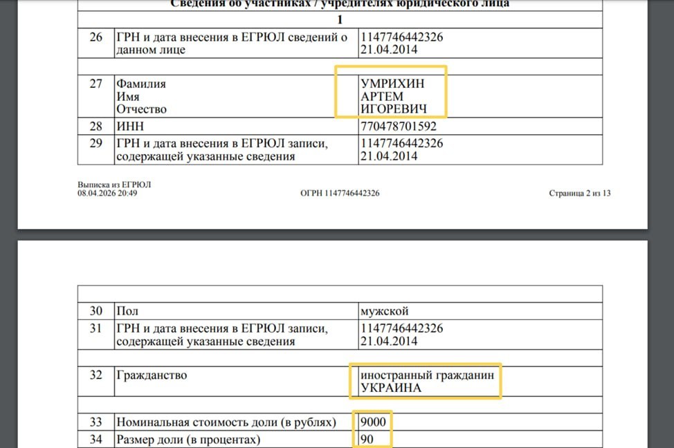 К слову, после начала СВО Умрихин перебрался в Эмираты, но доходы в России терять не спешит. За 2025 год его бизнес-структуры, включая «Селф мэйд паблишинг», принесли 42 миллиона рублей выручки и 10 миллионов чистой прибыли. А ещё до побега в Дубай Умрихин не брезговал госконтрактами и выступал на ведомственных концертах.