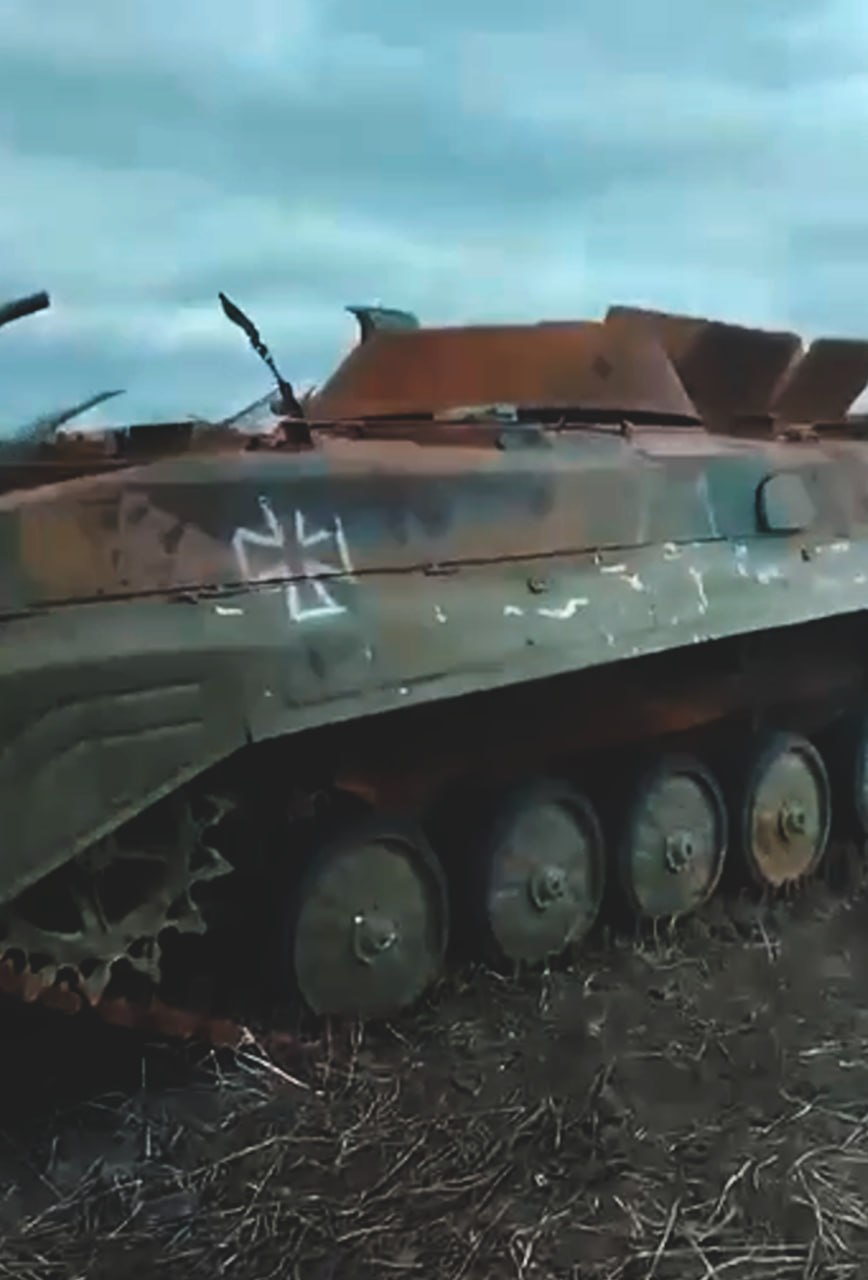 Символика говорит сама за себя. Для самых "либеральных читателей", которые могут заявить, что тактический символ был нанесен после уничтожения БМП (так иногда отмечают трофеи) зададим вопрос: "а с трупом в украинской форме, что делать будем?!"