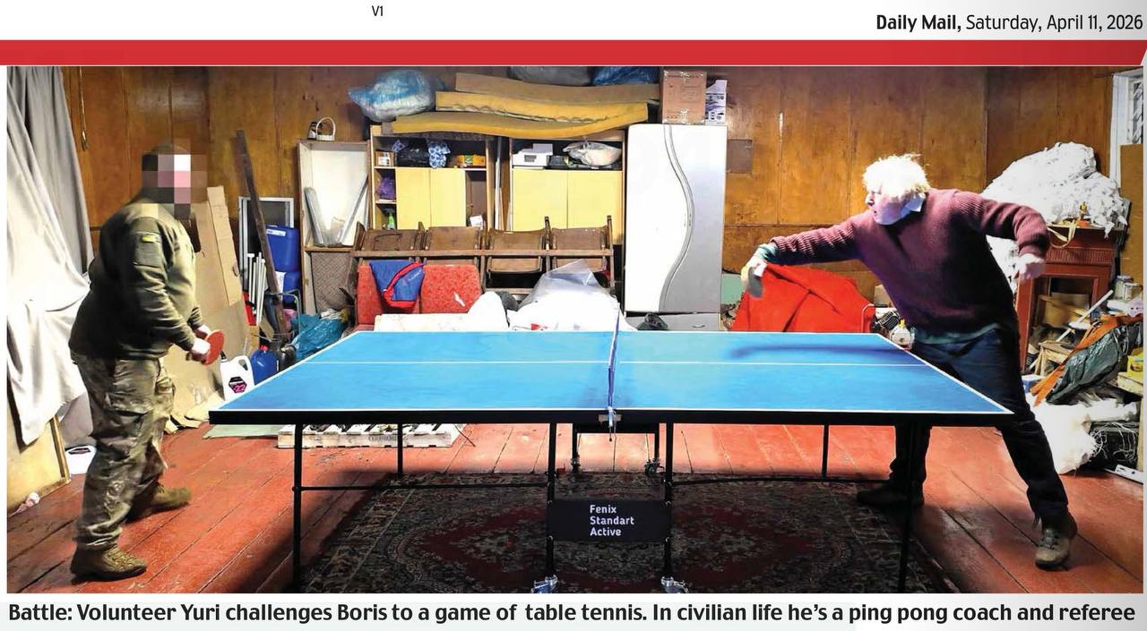 Кстати, репортаж Бориски Джонсона с украинского фронта сегодня в газете Daily Mail снабжен еще и этой фотографией. Должна проиллюстрировать суровые фронтовые будни британского русофоба.