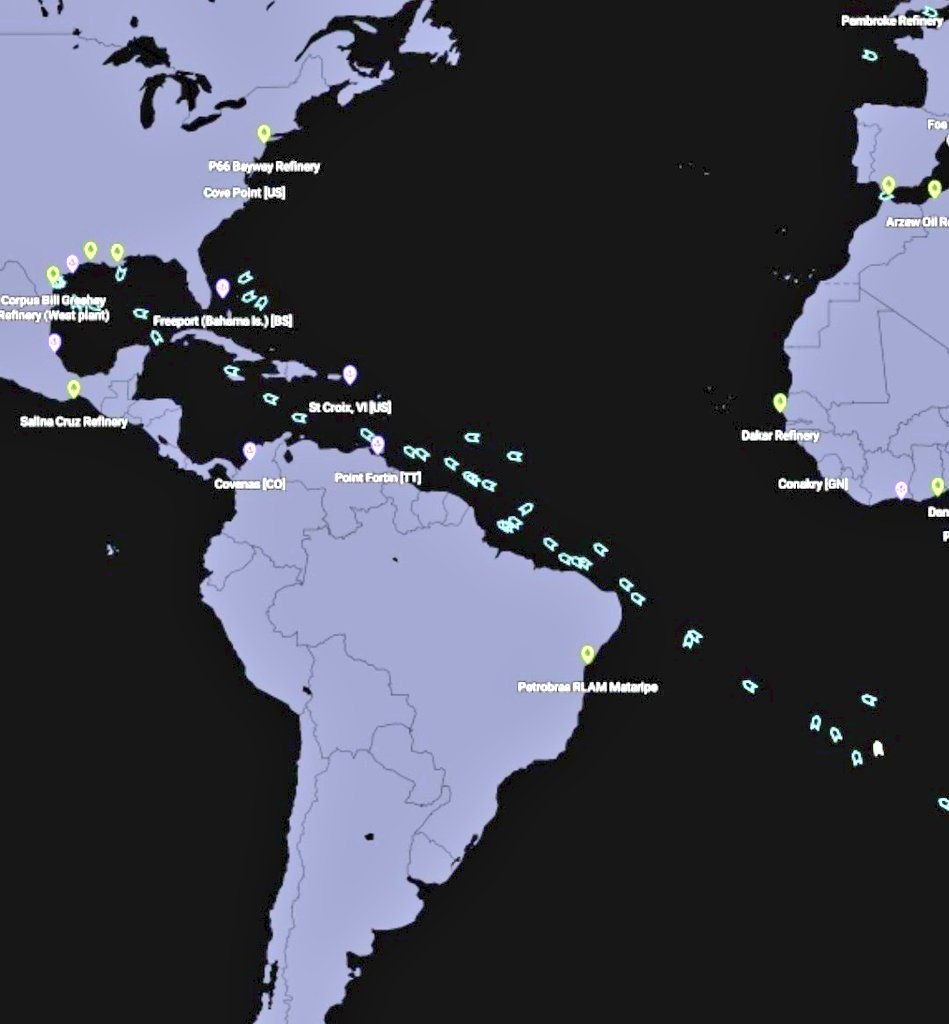 Порталы отслеживания судов фиксируют вереницу нефтяных танкеров, беспрерывно идущих на загрузку в американские порты.