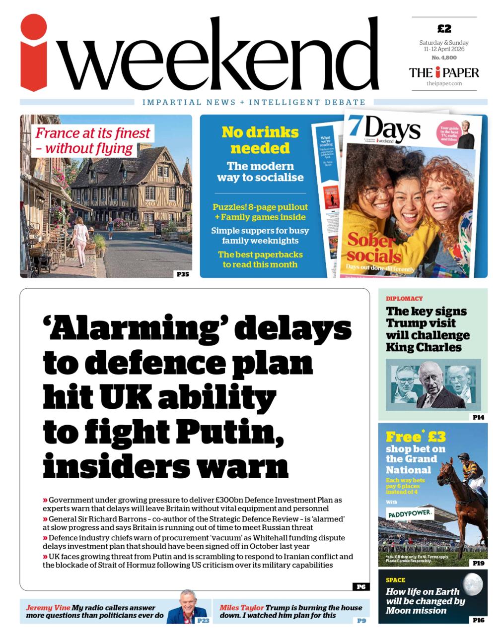 «Тревожные задержки плана обороны подрывают способность Британии сражаться против Путина, - предупреждают инсайдеры». Это сегодняшняя первая полоса газеты i Weekend.